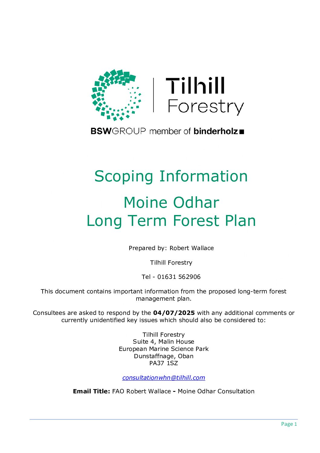 Thank you for your interest in proposals for a long-term forest management plan at Moine Odhar which will set out the planned operations for the next 20 years in accordance with the UK Forestry Standard (UKFS), 5th Edition (Published 2023), available to view here: The UK Forestry Standard – GOV.UK (www.gov.uk)