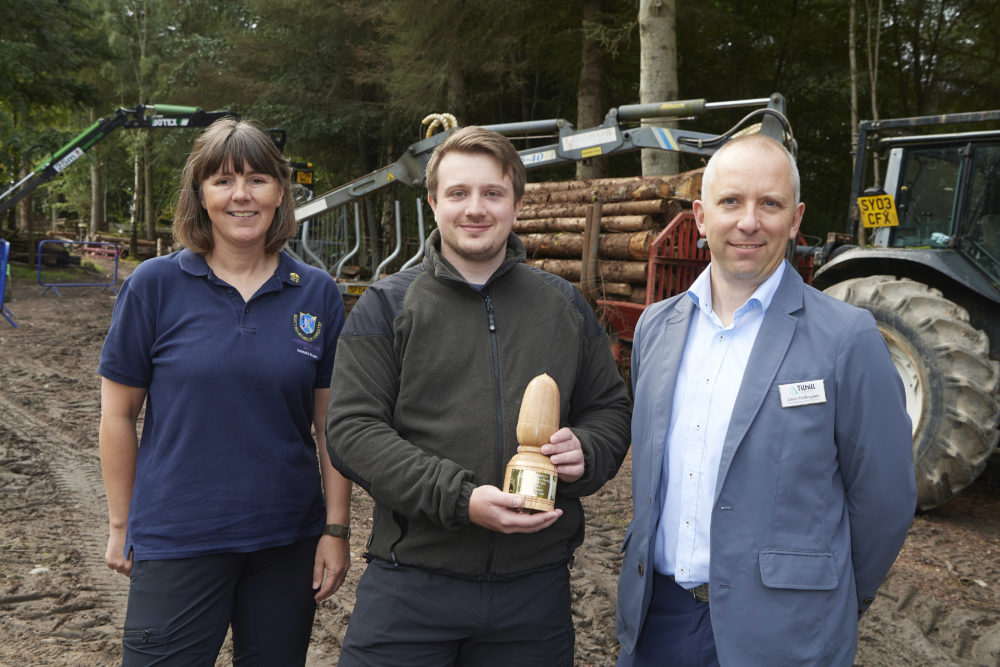 The 28-year-old was presented with a specially carved wooden trophy in the shape of an acorn by Tilhill Forestry’s Julian Hollingdale at the Scottish School of Forestry at Balloch.