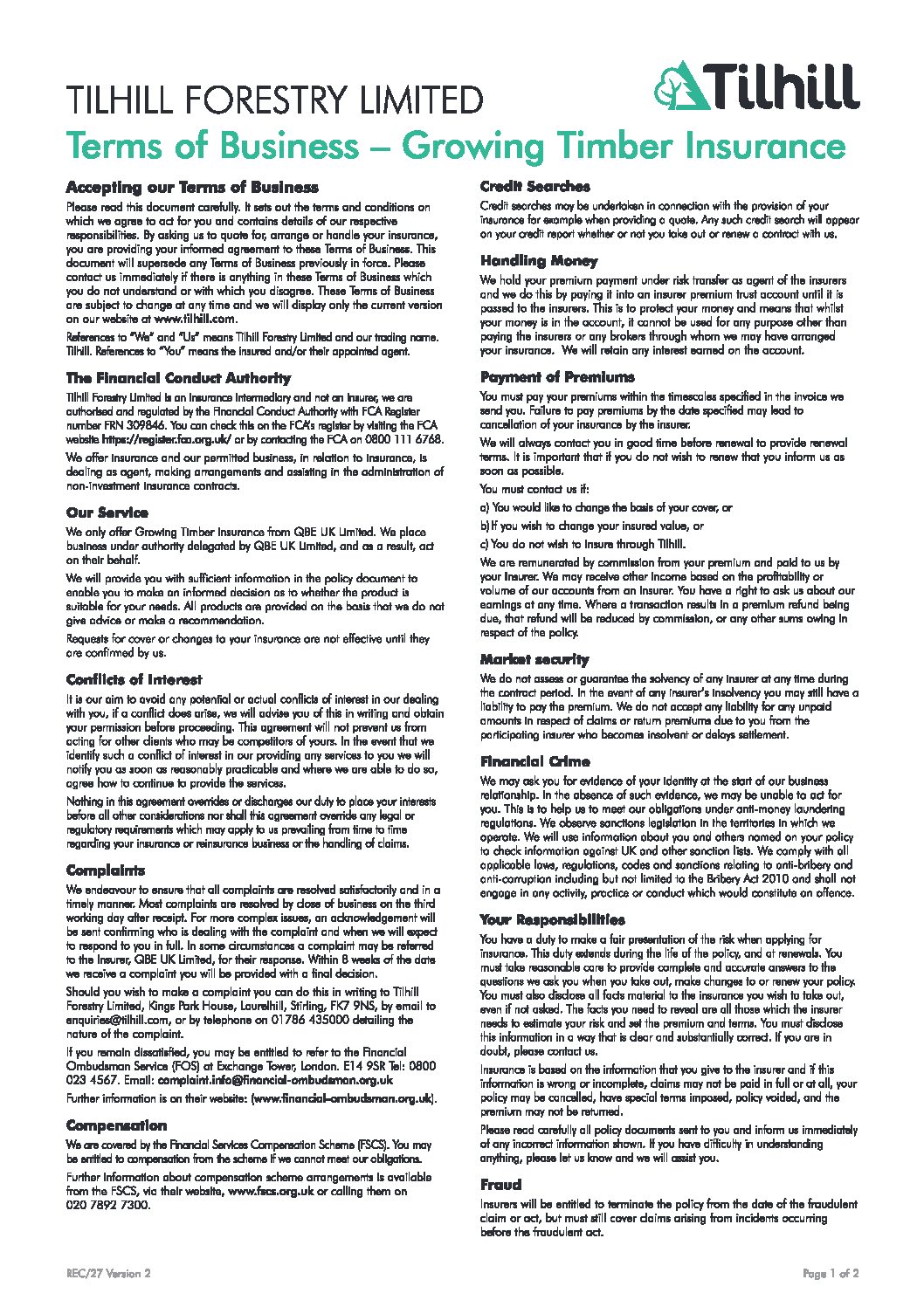 Tilhill is authorised and regulated by The Financial Conduct Authority. Our Reference Number is 309846 and our permitted business is ‘Non-Investment Insurance Contracts’. You can check this on the FCA’s register by visiting FCA’s website www.fca.org.uk or by contacting the FCA on 0800 111 6768.