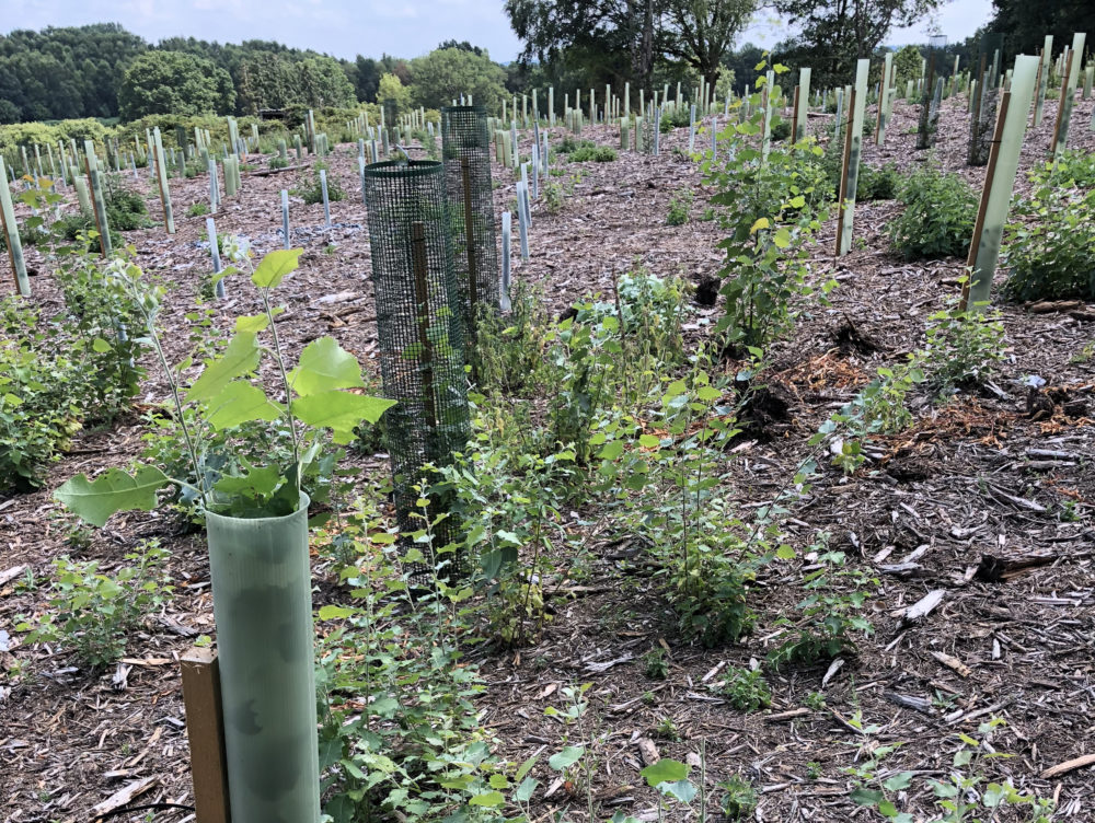Some trees from last winter’s planting are really struggling with the lack of moisture, particularly worst off are those on sandy and elevated sites. Whereas others that we mulched (incorporating all the woody debris from left over brash back into the soil) prior to planting are doing much better. This is because the biomass in the soil retains moisture like a sponge much more readily than sand which simply allows it to flow through like a sieve.