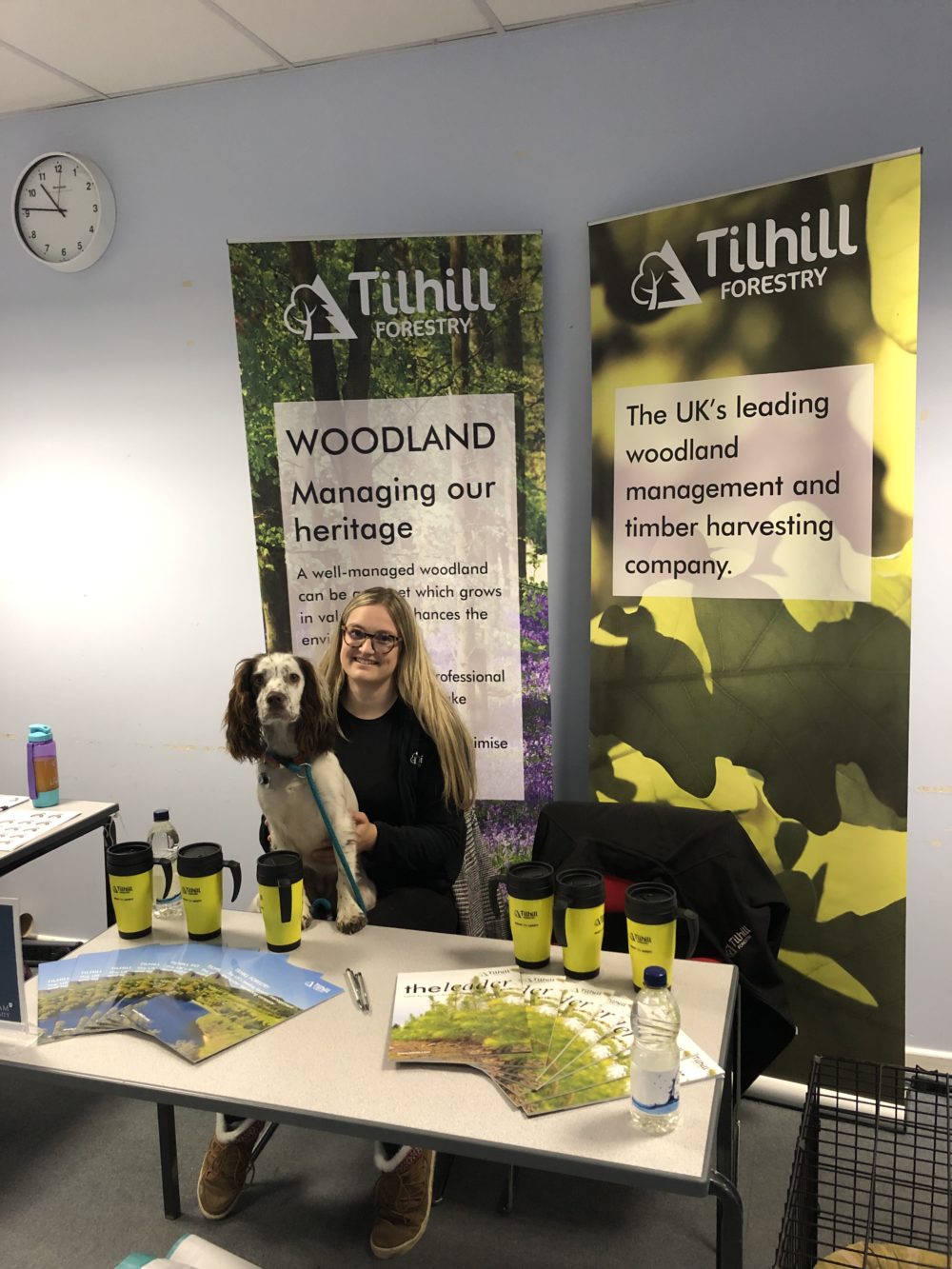 Keeping up the momentum on this, myself, Alexander and my dog Isla attended a careers fair at the university we both used to attend. It was a very successful day with a continual flow of students coming to discuss a career in forestry and learn more about what it means to be an assistant Forest Manager on the graduate scheme. This is just one of many events aimed at engaging with soon-to-be graduates in order to bring opportunities to educate them on forestry.
