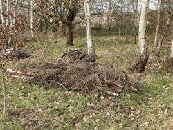 Due to the disuse of the site over time, woodland encroachment had occurred where scrubby species like blackthorn and bramble and pioneer species such as the birch proliferated the area along with other more established species such as oak. This then provided a woodland habitat type of an early successional lowland woodland mixture.