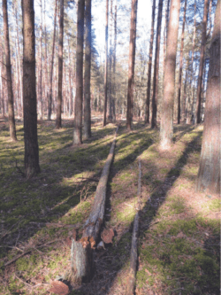 The results of this undermanagement was limited growth of the timber as the trees competed with each other for light and nutrients. The woodland had, in effect, started selfthinning with some trees being shadowed by others. Consequently, trees were dying and falling to the woodland floor.