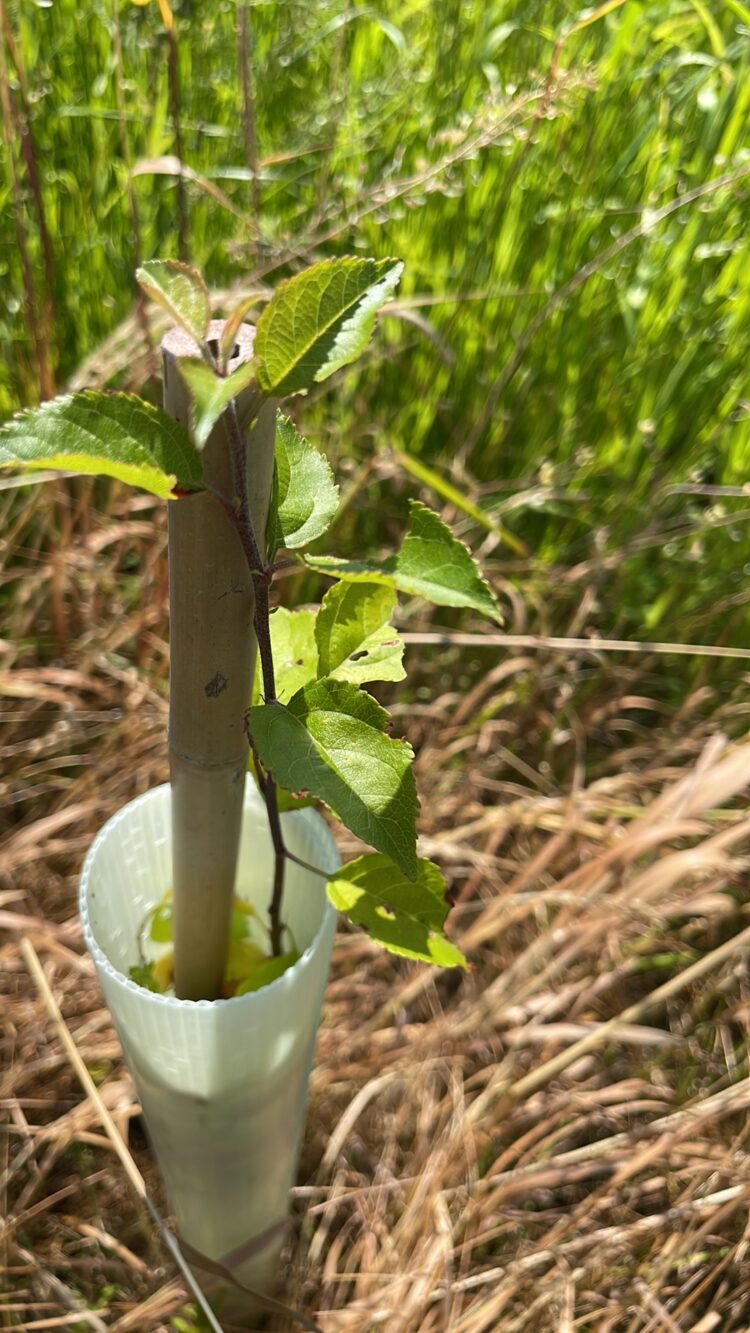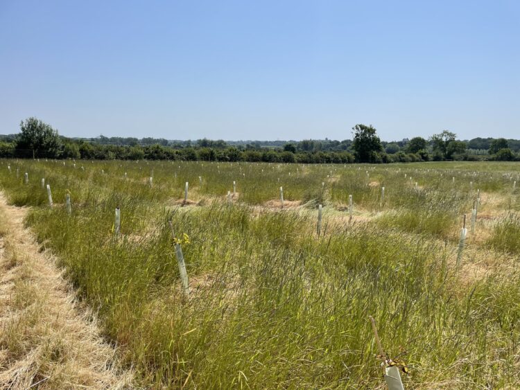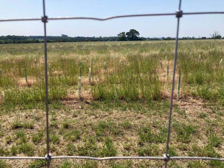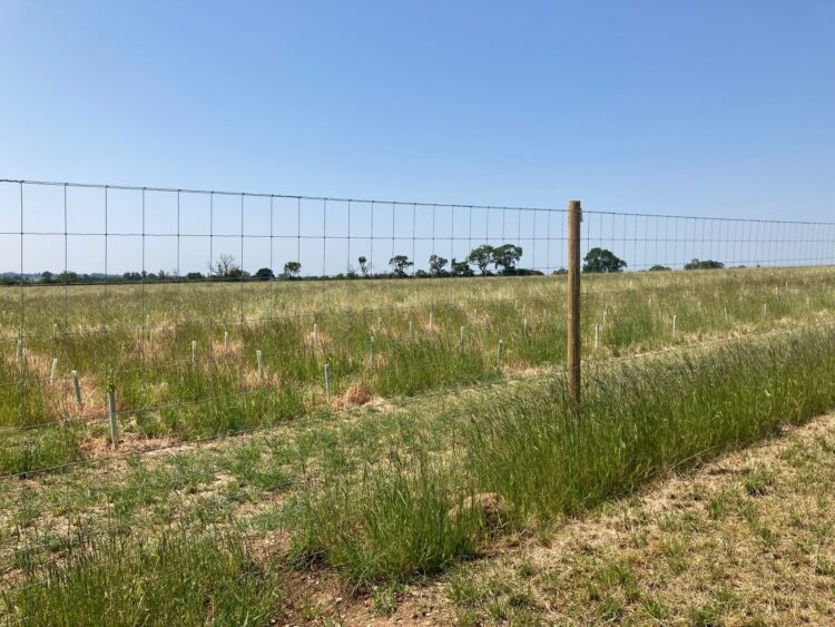 Combined deer and rabbit fencing alongside the use of easy wraps were used to protect the trees in their early years of establishment from the significant population of Muntjac, Roe and Fallow deer. The fencing and easy wraps reduce the costs associated with larger 1.5m tubes whilst reducing the amount of plastic in the scheme. A low vigour grass mix with 4% clover was also sown in the autumn to suppress weed competition and encourage good growth of the trees in their early years.