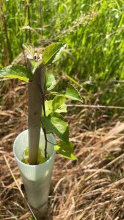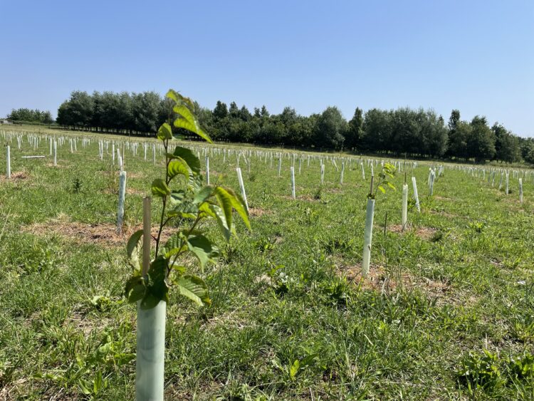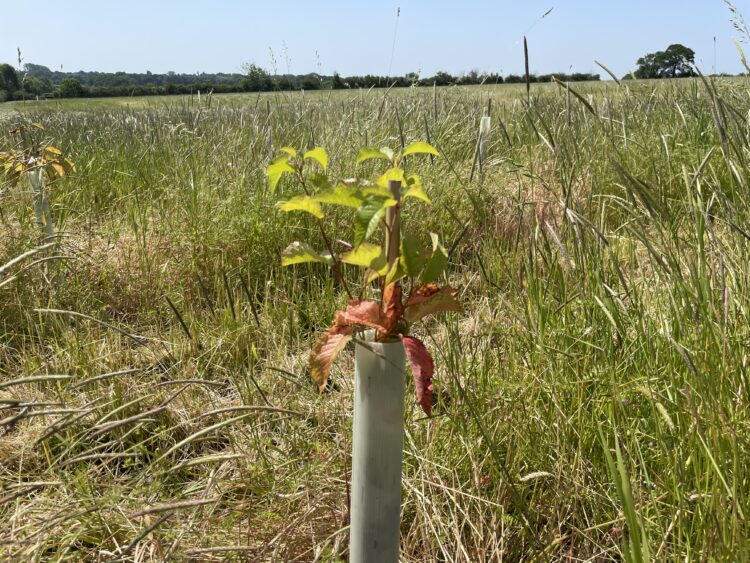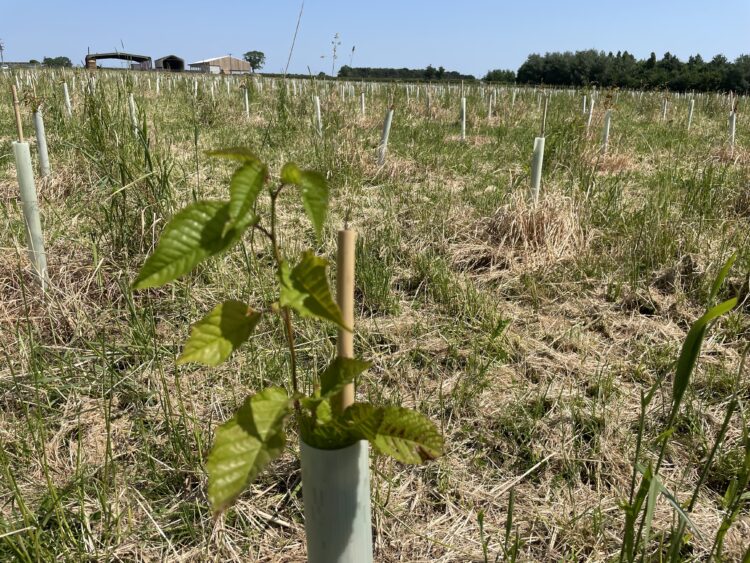 Over 1,700 Sweet chestnut (Castanea sativa) have been planted as naturalised broadleaf species which has adapted to Britain’s climate and conditions, a multipurpose tree which can live up to 700 years and is suitable for coppicing. It produces edible nuts which have been a food staple for both humans and livestock for thousands of years.