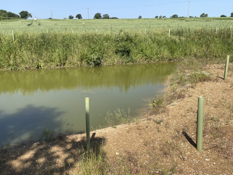 The site features two ponds in which native trees have been planted along the water course to provide shading to keep the water cool in the summer and prevent flooding during heavy rainfall, whilst providing a food source and habitat to water loving wildlife. Trees can also filter pollutants through their root system, improving water quality.