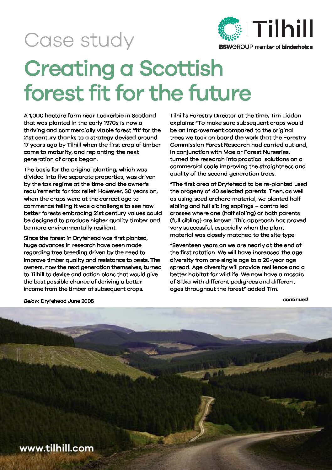 A 1,000 hectare farm near Lockerbie in Scotland that was planted in the early 1970s is now a thriving and commercially viable forest ‘fit’ for the 21st century thanks to a strategy devised around 17 years ago by Tilhill when the first crop of timber came to maturity, and replanting the next generation of crops began.