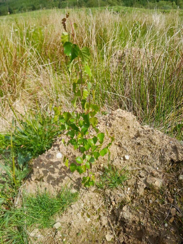 The decision was taken to avoid plastic tree shelter tubes on the site for ease of management and to avoid plastics in the forest.