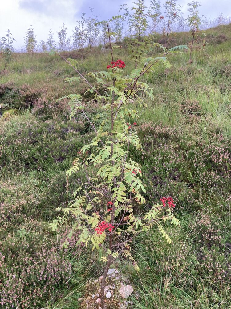 The project comprises of native species suitable for the site and naturally present in the wider landscape. Species include Scot’s pine and broadleaf trees, such as alder, birch, goat willow, hazel and rowan. Rowan provides pollen and nectar for pollinators such as bees and bright berries provide a rich source of food for birds including valuable feeding opportunities for Black Grouse.