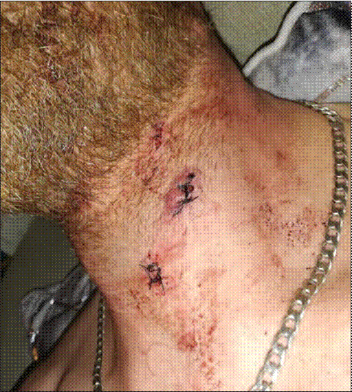 The chain brake worked and stopped the chain before it contacted the operator’s neck. The stationary chain caused two cuts that required stitching. The investigation is still on going