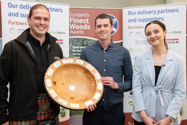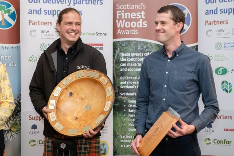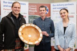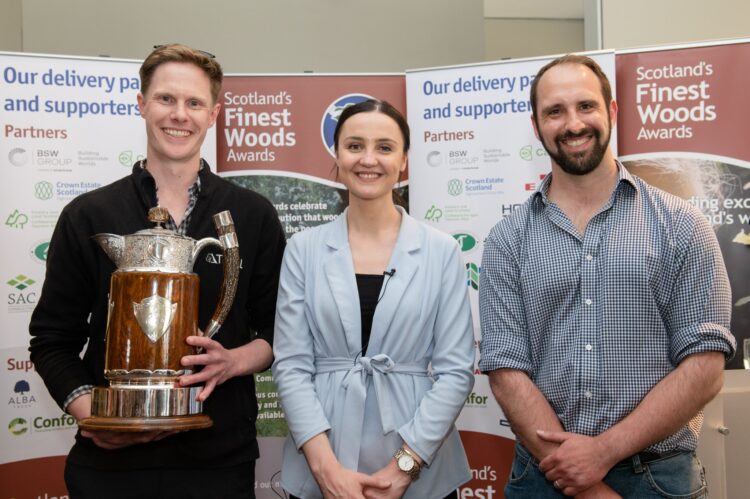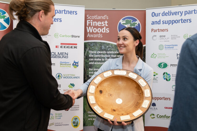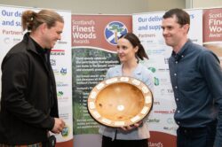 There was also a rare presentation made at the Quality Timber Award judges’ discretion of The Dulverton Flagon, last awarded in 2016. It was presented to Cormilligan, a large new commercial wood planted in Upper Nithsdale, Dumfries & Galloway, managed by Tilhill’s, Isaac Adams. The judges described it as: “An excellent example of modern Scottish forestry, delivering multiple objectives, focusing on quality timber and climate change mitigation”. They praised its “ambition, vision, and ability to take on board others’ views and criticism in its development”.