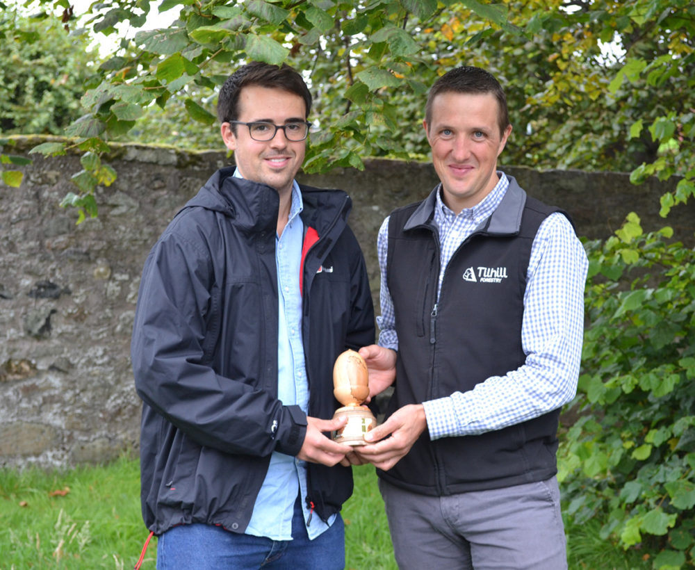 Harry Thomas from Hackney, London, has won the Tilhill Forestry Phil Johnson Memorial Award for Best Silviculture Student 2016/17 on the MSc Silviculture module, studied by over 60 full-time and distance-learning students. He was presented with a specially carved wooden trophy in the shape of an acorn by Tilhill Forestry District Manager Eddie Addis along with £250.
