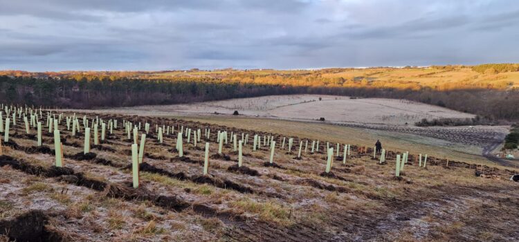 As part of Banks Mining’s plans, Tilhill Forestry has completed the ground preparation and commenced planting. Around 36,000 trees and shrubs such as pedunculate oak, sessile oak, hazel, cherry, crab apple, silver and downy birch are to be included in the new woodland, which is expected to be completed by the end of March. The first 2,000 trees have been planted with the enthusiastic help of local primary school children, charities and community groups during a week-long series of planting sessions on the site.