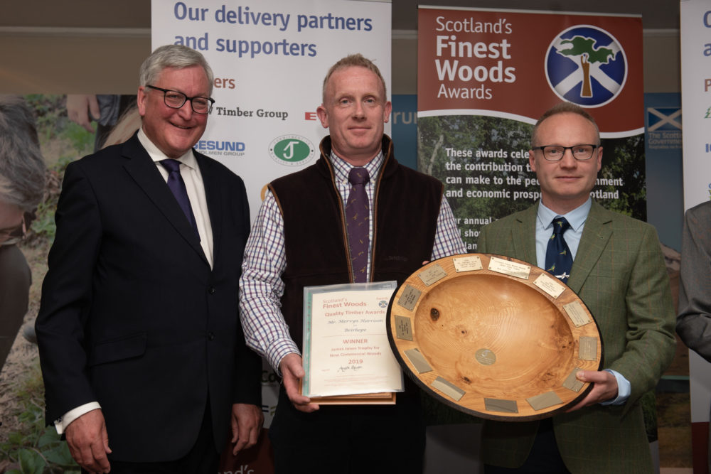 The winning property, Beirhope, located near Hownam, Kelso in the Scottish Borders is managed by our Central Border’s Team. The trophy was presented by Fergus Ewing MSP to Jason Sinden of Gresham House who received the trophy on behalf of Beirhope’s owner Mervyn Harrison. Accompanying Jason to receive the award was Tilhill’s Forest Manager, Andy Dunsmuir.